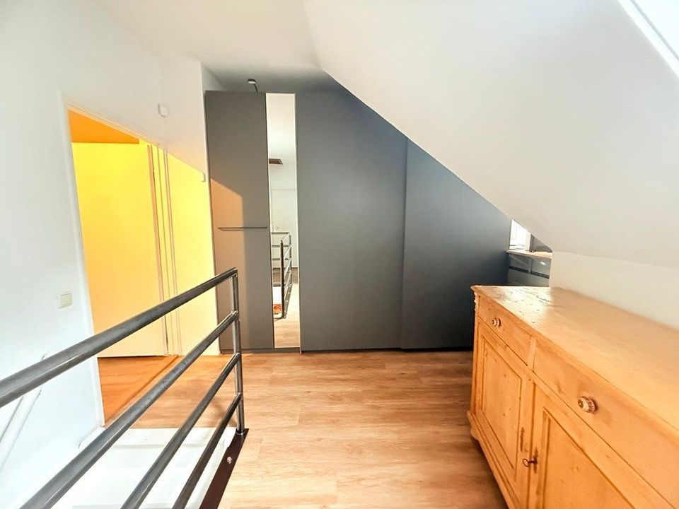 The house offers two spacious bedrooms plus a separate room perfect for a home office or study. On the ground floor, you’ll find a large storage area with laundry facilities, a bathroom, and direct access to the beautiful private garden, a rare and valuable feature in the city.